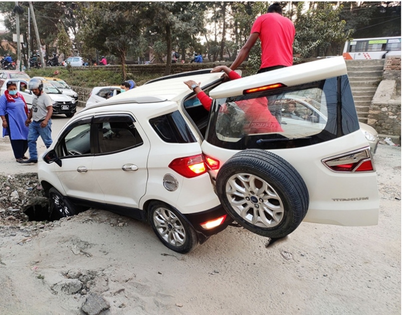 लामो समय सम्म ढल मर्मतका लागि खनेको खाल्डोको व्यवस्थापन नहुँदा बुधबार साँझ चाबहिल गोपीकृष्ण हल नजिकै बा १४ च २१८६ नं कार दुर्घटनामा परेको हो।