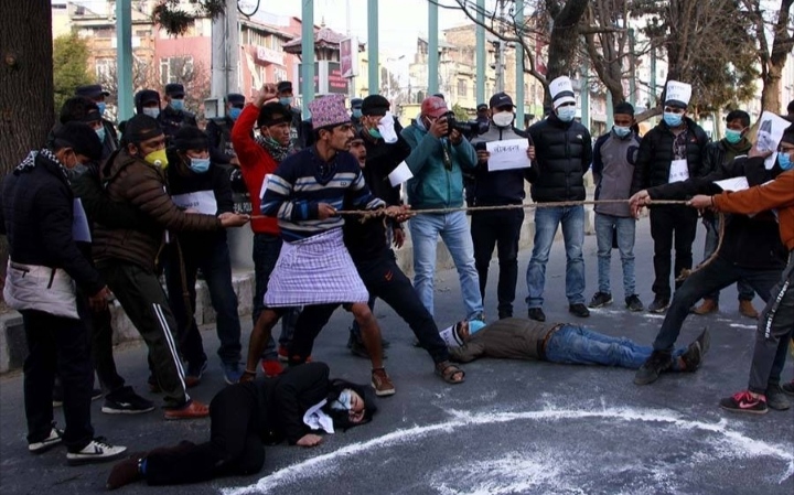 नेपाली कांग्रेस युवा प्रचार नेटवर्कले आयोजना गरेको विरोधमा प्रदर्शनमा युवाहरुले संसद् पुनःस्थापनाको माग गरिनुका साथै नेकपाभित्रको किचलो, सरकार र जनताबीचको द्वन्द्वसमेत चित्रण गरेका थिए।