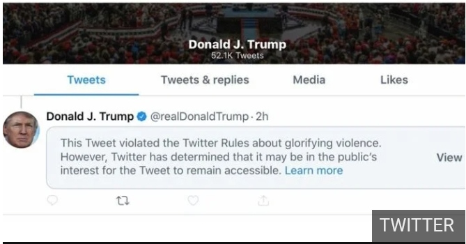 उक्त चेतावनीमा भनिएको छ, “ट्विटरले यो निर्धारण गरेको छ कि यो ट्विट पहुँचयोग्य रहन जनताको हितमा हुन सक्छ ।” ट्विटर र ह्वाइट हाउसबीचको यो पछिल्लो विवाद हो । राष्ट्रपति ट्रम्पले अमेरकी सहर मिनियापोलिसमा प्रहरी हिरासतमा एक काला जातिको मृत्यु भएपछि गरिएको प्रदशर्नबारे ट्विट गरेका थिए ।