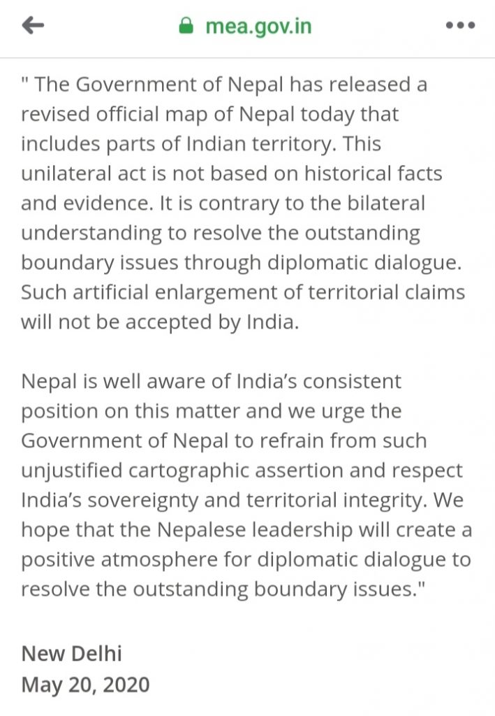 Home / Politics / भारतले फर्कायो जबाफ : नेपालको संशोधित नक्शा आपत्ती जनक