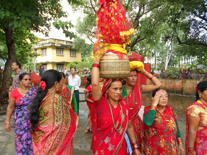 सवाँ, अपामार्गलगायत वनस्पति प्रयोग गरेर नुहाउनाका साथै गौराको प्रतिमूर्ति बनाई नजिकका पानीका मुहान, धारा तथा तलाउमा पूजाआजा गर्ने गरिएको दोगडाकेदार गाउँपालिका–३, श्रीकोटका गोल्मा भाटले बताए।